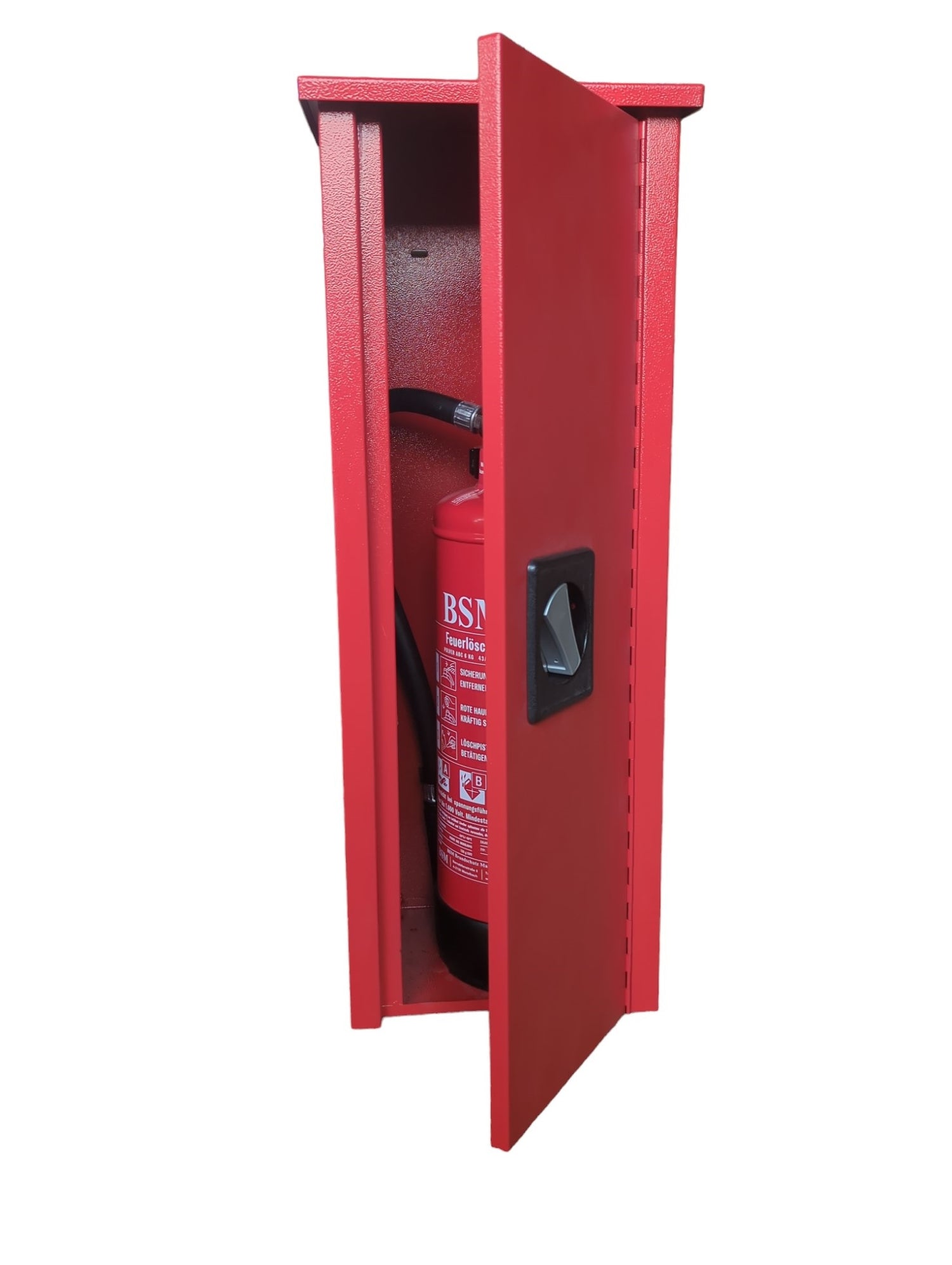 Einige Modelle sind teilweise transparent, um eine Sichtprüfung des Feuerlöschers zu ermöglichen, ohne den Kasten öffnen zu müssen.